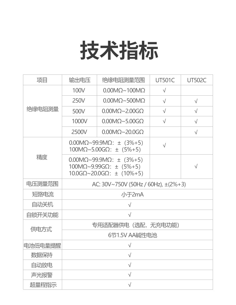 优利德(UNI-T)UT501C/UT502C 绝缘电阻测试仪数字兆欧表智能
