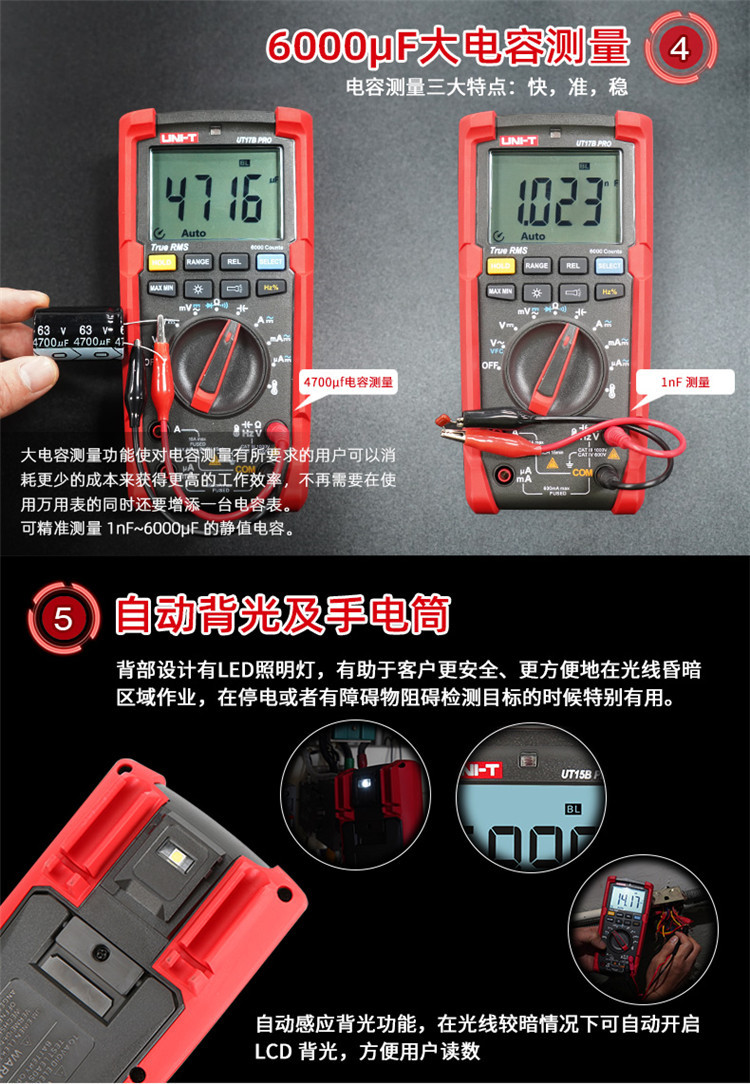 优利德(UNI-T)数字万用表多功能工业级真有效值智能防烧电表